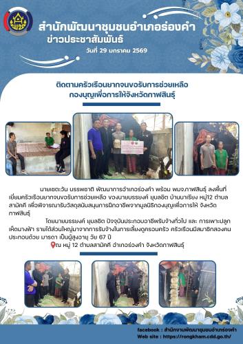 ติดตามครัวเรือนยากจนขอรับการช่วยเหลือ กองบุญเพื่อการให้จังหวัดกาฬสินธุ์
