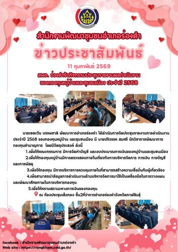 สพอ. ร่องคำจัดกิจกรรมประชุมรายงานผลดำเนินงาน ของกองทุนหมู่บ้านและชุุมชนเมือง ประจำปี 2568